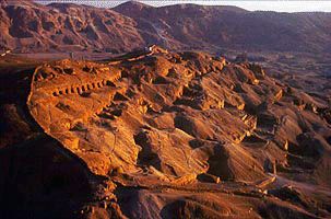 Luftaufnahme von Sheikh Abd el-Qurna mit Blick nach Norden Die Noblengräber liegen in einer hügeligen Gegend mit den