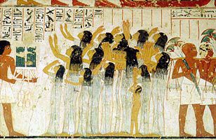 Wandmalerei im Grab des Ramose. Es zeigt eine Gruppe von Klageweibern Als Beispiel eines Privatgrabes dient uns TT 55, das Grab von Ramose,